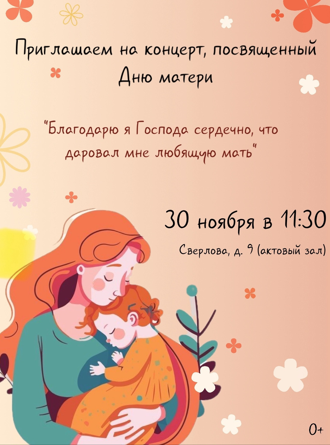 30 ноября в Духовно-просветительском центре Ижевской и Удмуртской епархии пройдет концерт «Благодарю я Господа сердечно, что даровал мне любящую мать».