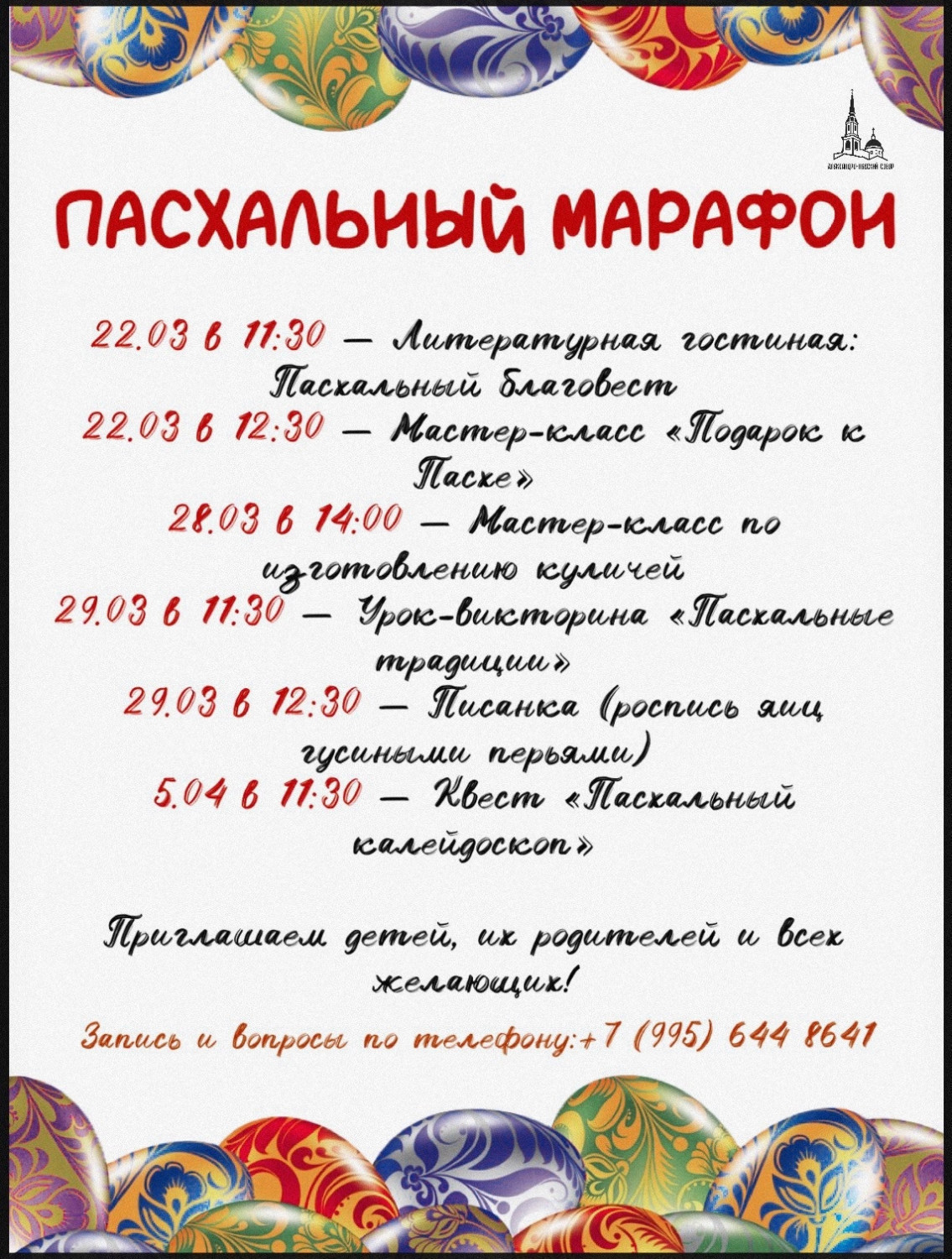 Дорогие братья и сестры, приглашаем вас принять участие в мастер-классах и занимательных уроках, посвященных великому, светлому и радостному празднику — Пасхе Христовой!