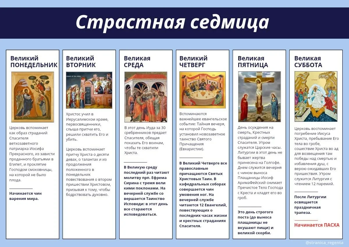 Даруй нам, Господи, провести каждый день Страстной недели в глубокой молитве, душеполезном чтении и чистосердечном покаянии, чтобы с детской радостью мы смогли встретить Праздников праздник и Торжество из торжеств – Пасху Христову!